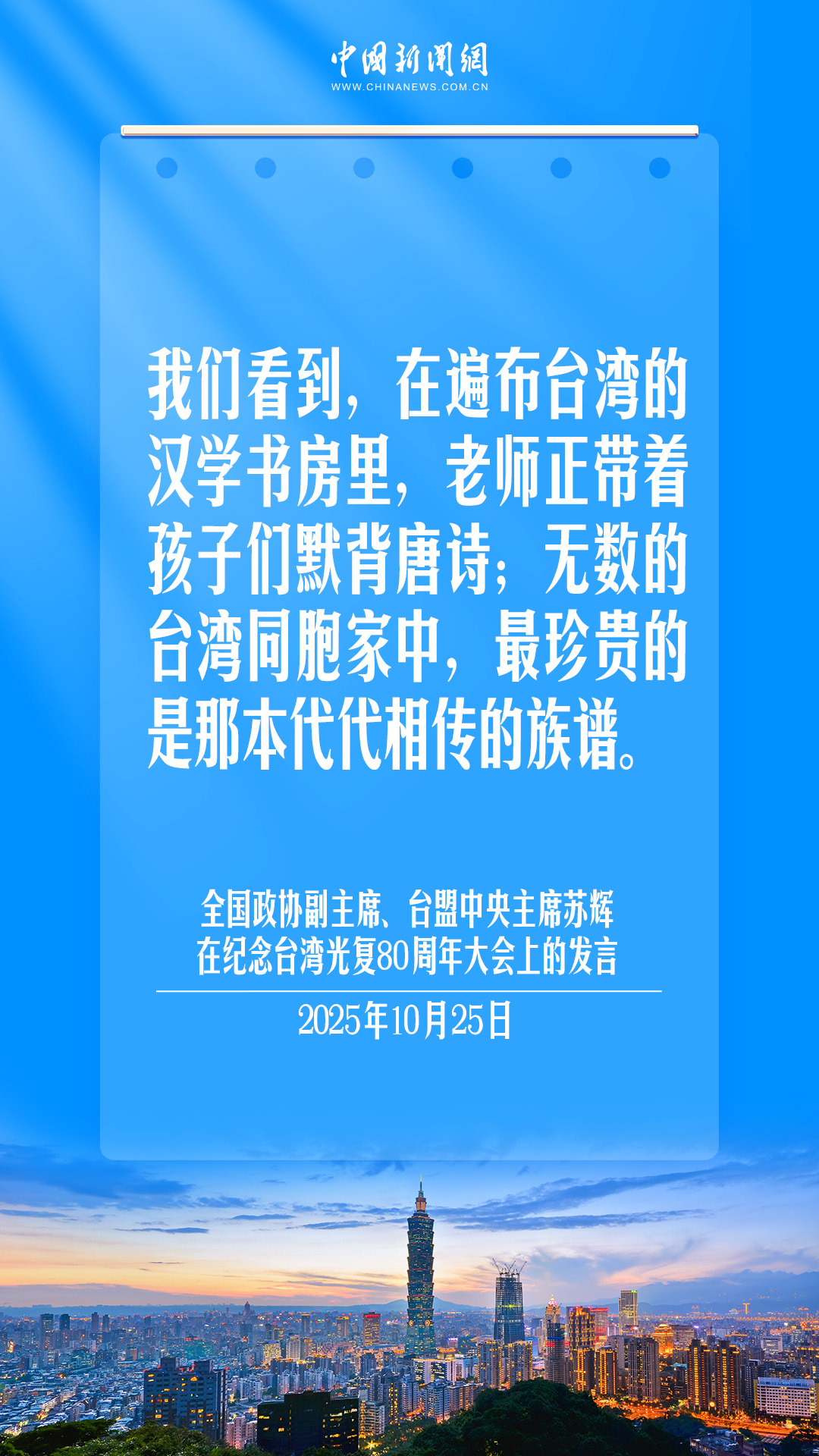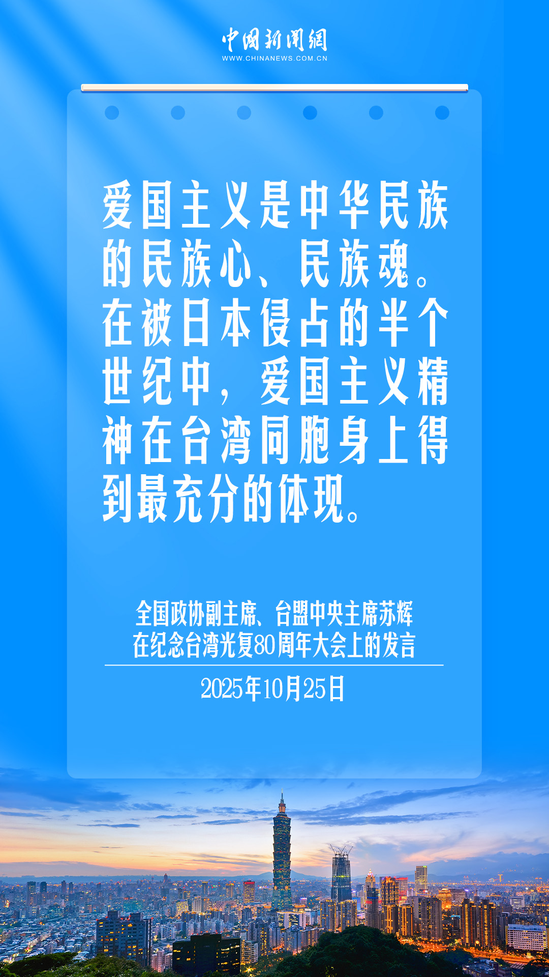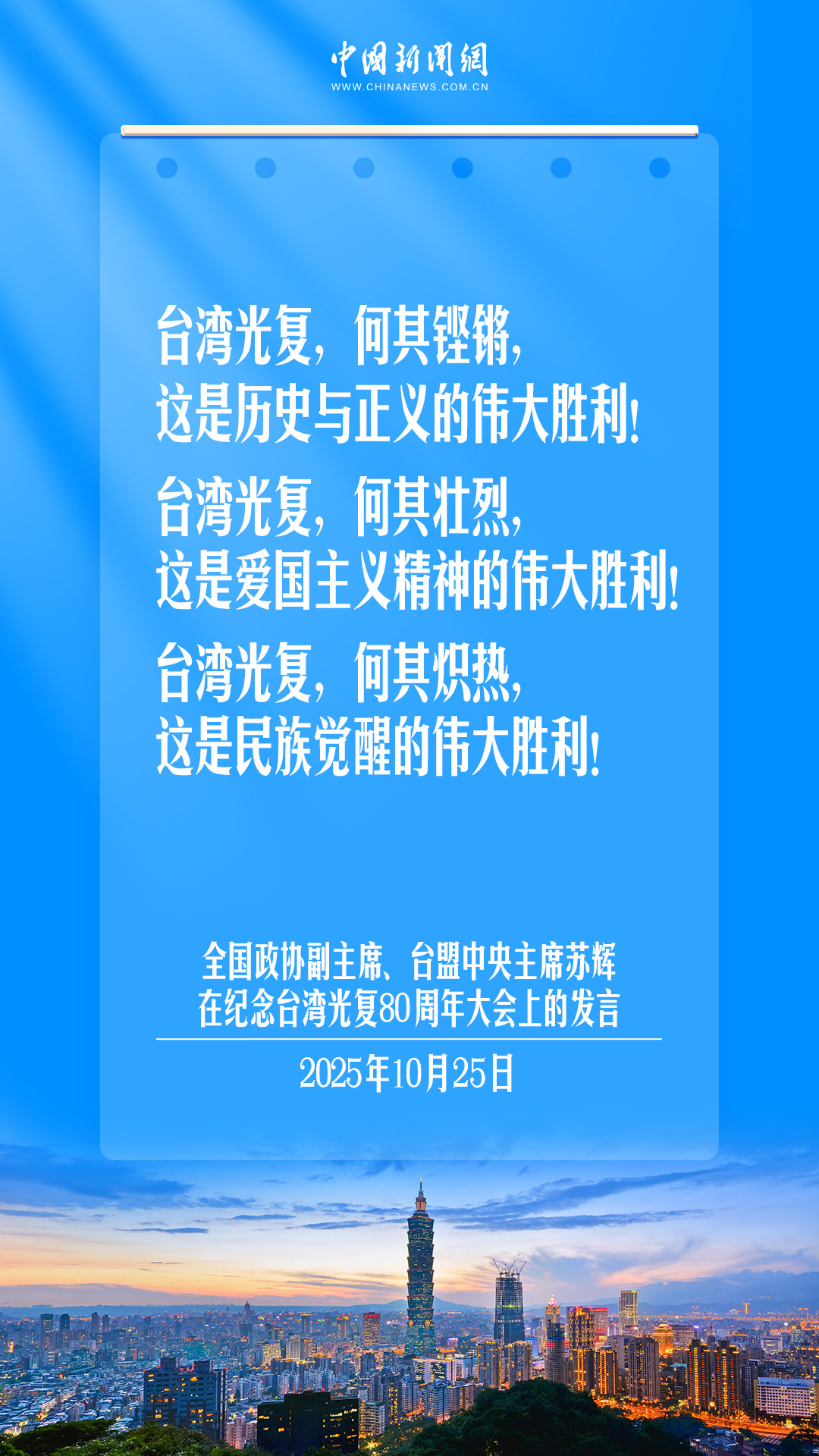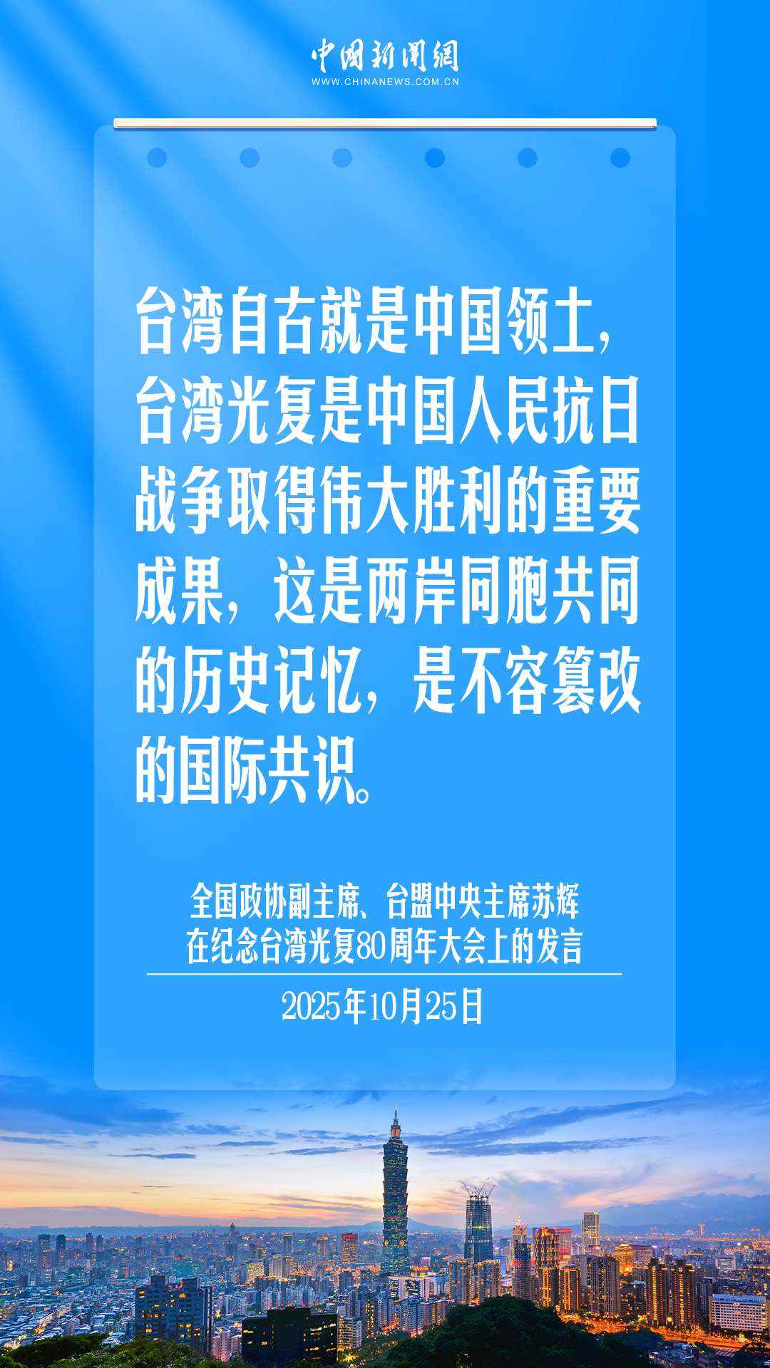 今日留念台湾收复80周年年夜会正在京召启。齐邦政协副主席、台盟中心主席苏辉正在年夜会上收行。